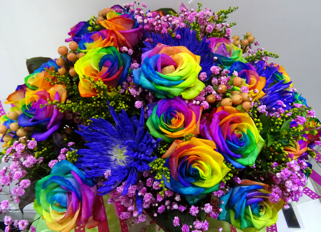 Knock knock, Zulius--regardless of what you're doing in the theatre on the day of proverbial hearts, your partner is showing up dressed a little more modern for once. Maybe as a treat. In his arms is a rather large boquet of flowers that's... some real interesting colours, away from the usual planned out, flowery poem. It didn't smell like flowers, either--but rather, like something sweet, sugary. Confectionery. ]